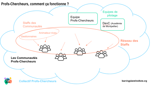 - Le rôle d’Animateur·rice : animer des ateliers réguliers pour accompagner les membres de leur Communauté à suivre la démarche Profs-Chercheurs et à mutualiser leurs travaux sur la plateforme Profs-Chercheurs.