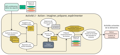 Pour faire face à un Défi spécifique, diverses Actions pourront être utiles. Cette activité de la démarche Profs-Chercheurs consiste à mettre en commun une liste d’Actions que les membres des Communautés pourront évaluer, chacun·e dans son contexte éducatif, en partageant des Retours d'expérimentation sur la capacité de l'Action à relever le Défi préalablement décrit.